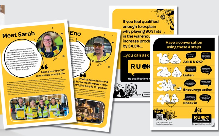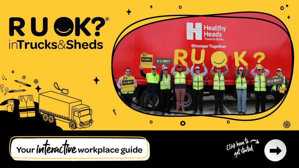 For the fourth year in a row Healthy Heads in Trucks & Sheds and R U OK? have teamed up to ensure everyone working in the road transport, warehousing and logistics industries know when and how to meaningfully connect and genuinely ask, “are you ok?”